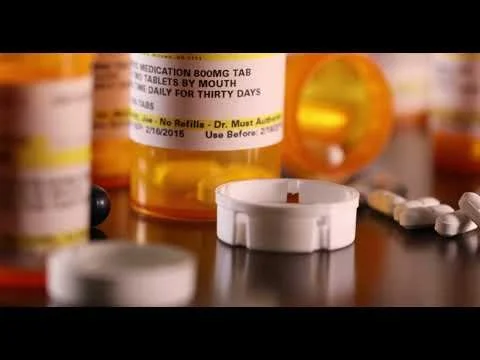 Slow Pan of Prescription Medicine Bottles, Pills and Stethoscope.