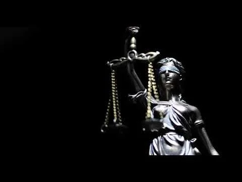 Slow Off-center Rotation of Lady Justice Statue with Dramatic Spot Lighting.