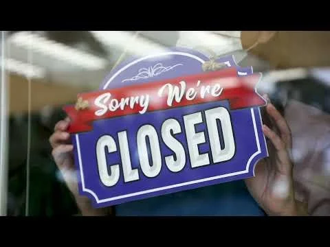 Female Store Owner Wearing A Face Mask Reluctantly Turns Her Shop Sign To Closed.